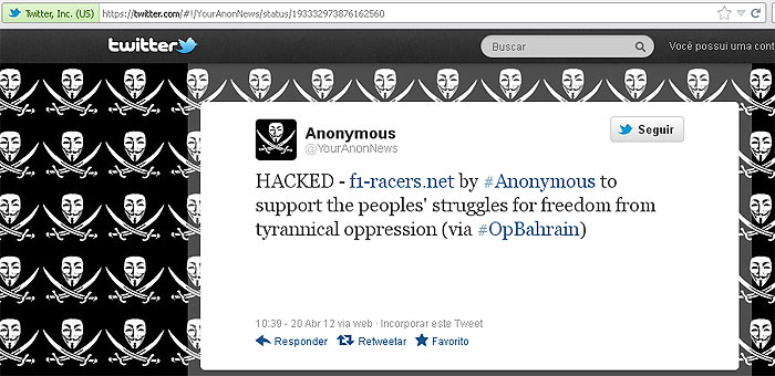 Os hackers invadiram o site f1-racers.net e, no lugar, colocaram uma nota de protesto. Nela, eles dizem que são contra os assassinatos que ocorrem nas ruas do Bahrein, de pessoas "atropeladas por veículos, espancadas, torturadas, alvos de gás lacrimogênio, sequestradas pela polícia, com seus negócios vandalizados pela polícia, e que tiveram gás lacrimogênio jogado em suas casas à noite".